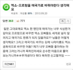 으르렁을 애국가로 바꾸자는 엑소팬들