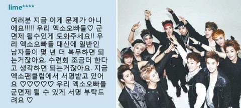 우리 엑소오빠들 군면제될수있게 도와주세요.