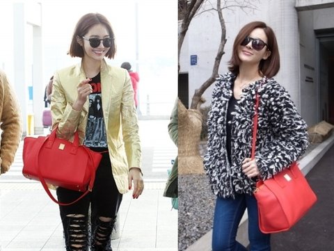 같은 레드 다인백으로 포인트 찍은 아이비랑 비교해 봤을 때
