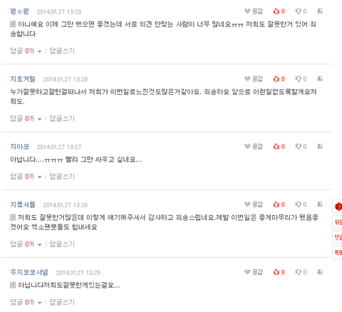 클린운동 응원해주셔서 감사하고 사과받아주셔서 감사해요