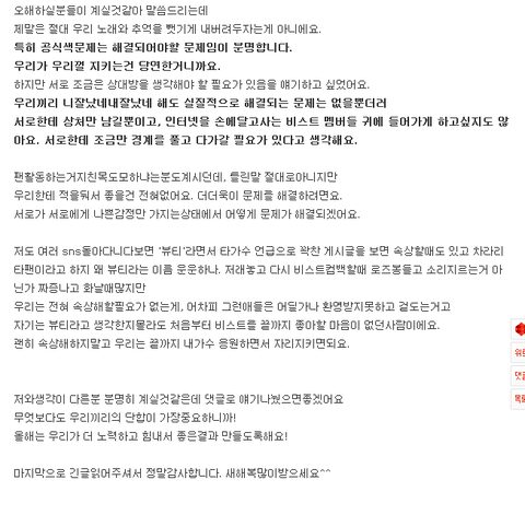 그 외 많은 타팬분들 저희 클린운동 응원해주시고 사과받아주시고 저희개념팬 알아봐주신거