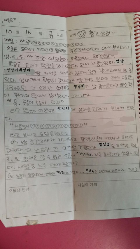 비밀일기라고 반 접어놨다..ㅎ 쌤다봤겠지?