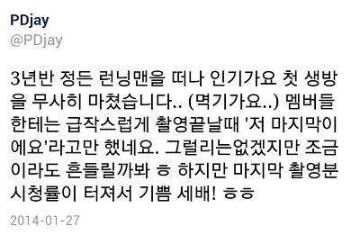 방금 런닝맨 멱피디님 트윗 떴길래ㅋㅋ