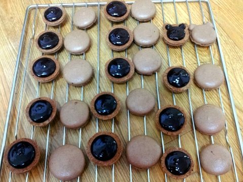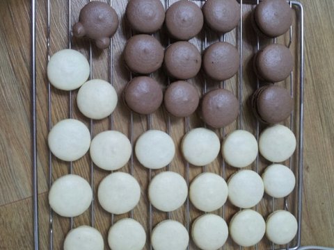 재료 : 아몬드분말62g,슈가파우더110g,코코아파우더10g,계란흰자66g,설탕32g