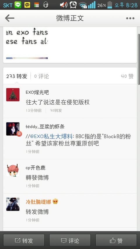 웨이보 글 지우라는애들이많아서 글삭했는데 이미 퍼질대로 퍼짐 지금 중국팬들사이에서 블락비팬 비비씨라고 겁나퍼졌는데...