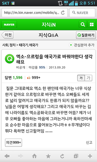 엑소-으르렁을 애국가로 바꿔야한다 생각해요