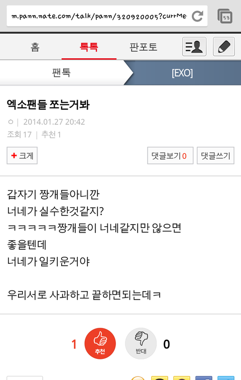 니들이 왜그랫어ㅠㅠ클린이나해ㅠㅠ원인제공우리잔ㅠㅠ이러면 눈팅하는비비씨들기세등등해져서이딴글올린다고 욕한건비비씨잘못맞잖아 우리가우리 잘못 웨이보에퍼트림.?ㅋㅋ그것도아니고 클린안하겟단것도 아니고