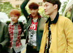 크리스-세훈 사이를 벗어나려했지만 백현이가 자리를 옮기며 결국 장신 세훈이 옆에 있게 됨ㅋㅋㅋㅋㅋㅋ