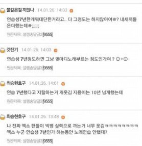 안녕하십니까 지금 비비씨와 엓팬들끼리 사이가안좋으신거 다들알고계시죠..? 제가 아까글을올렷지만 증거를 더확보해서 올리려고왔습니다 뉴빵글에서 뒷담까시고 그러신거 매우불쾌합니다정말.. 사과부탁드립니다 엓팬도 제가 대표로 사과드리겟습니다 정말진심으로 고개숙여사과드립니다