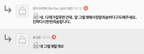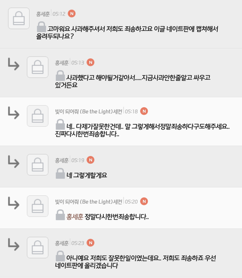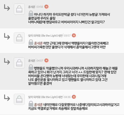 우선 전엓팬이구요. 사과했다는걸 알려야 할것 같아서요 이캡쳐본은 저랑 그빕씨랑 대화한것과 사과문이예요.