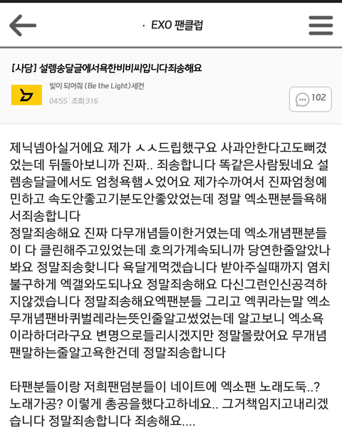 저두사과할게요. 우선 팬송을 설렘송으로 만들어 저희마음대로 공유하고 다닌거 정말 진심으로 사과드립니다.