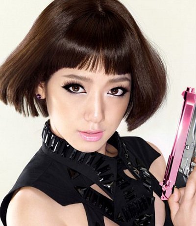 5:5 가르마에 쫙 편 직모 스타일링과 눈에 잔뜩 힘 준 스모키 화장이 포인트인 듯