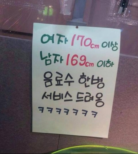 남자 169이하는 그래도 좀 있지 않나... 근데 남자 169는...음료수 한병을 택할까 ..자존심인 170을 택할까..