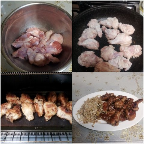 닭 씻고 우유에 재워두고, 녹말 입히고, 후라이팬에 굽고, 오븐에 다시 굽고,