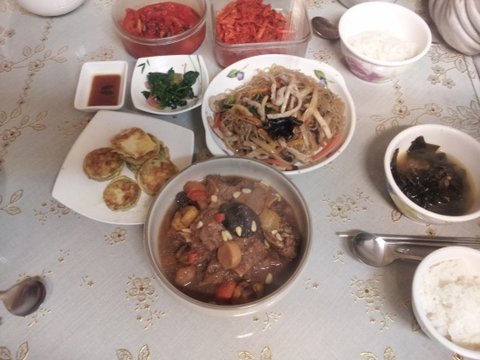 실제 생일상 사진은 굳이 찍지 않아서 없구요. 이건 생일날 저녁밥 먹을때 남은 음식들로 찍은 사진이네요