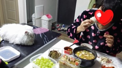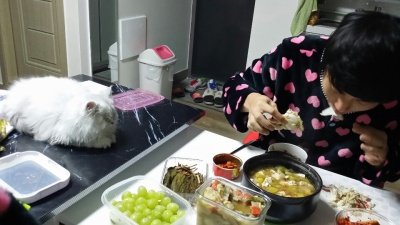 나 밥먹을땐 괴롭히고 앵앵거리규.. 남편이 밥먹을땐 얌전냥...