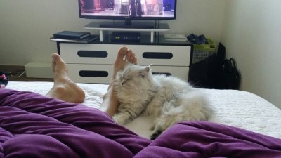 술병나서 뻣어있는 남편님 발에 기대잠든 먼지냥♡ㅋㅋ