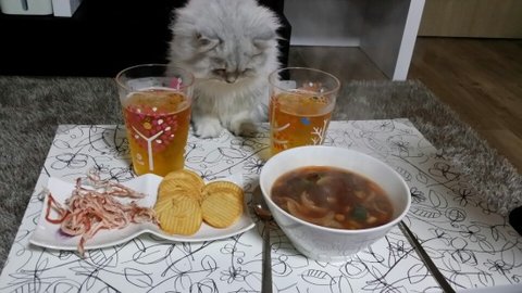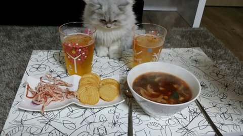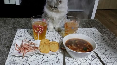 식탁에서 나밥먹는거 지켜보는 먼지냥♡ 발느므느므귀욥♡