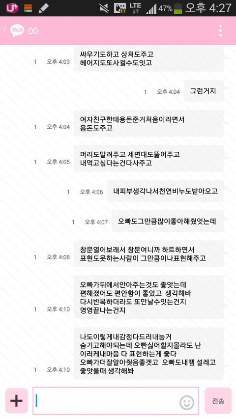 다시만나달라고 거의 애원 조로하고있어요 ...