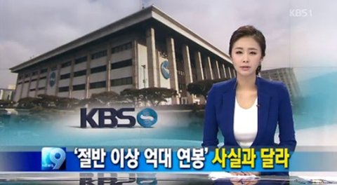 최근 민주당 소속 최민희 국회의원실이 배포한 자료에 따르면, KBS의 전체 직원 4805명(2012년 기준) 중 절반이 넘는 2738명(57%)이 연봉 1억 이상을 받는 걸로 나타났다. 이같은 사실이 보도되자 KBS는 보도자료를 내 해명한 데 이어 다시 9시 뉴스 시간에 두 꼭지를 할애해 반박하고 나섰다.