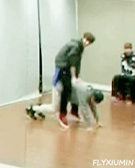 앞에잠깐보면 자기보다 키큰 루한이를 엎드려뻗쳐(?)자세로 들어올림;;;ㄷㄷ