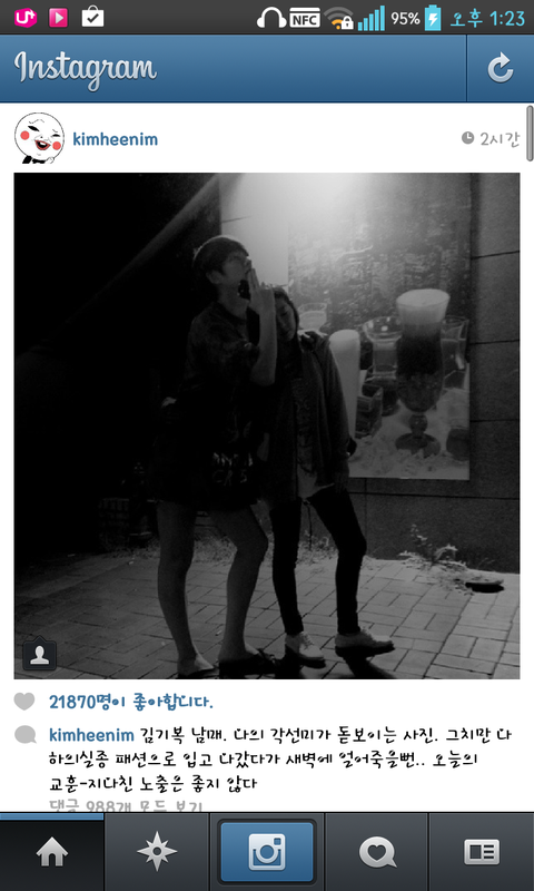 군대 제대하자마자 태연이랑 사진찍고 인스타에올림