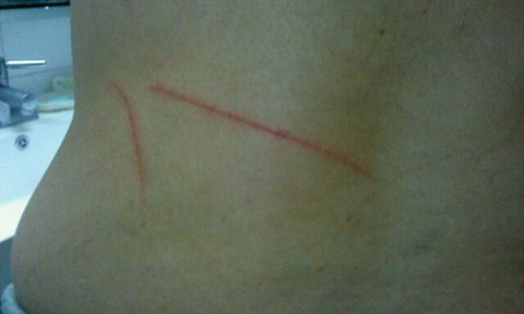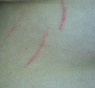 전혀 긁힌적도 없고, 딱히 아픈것도 못느끼다 씻으실떄 따가워서 봣더니 이렇게 상처가 종종