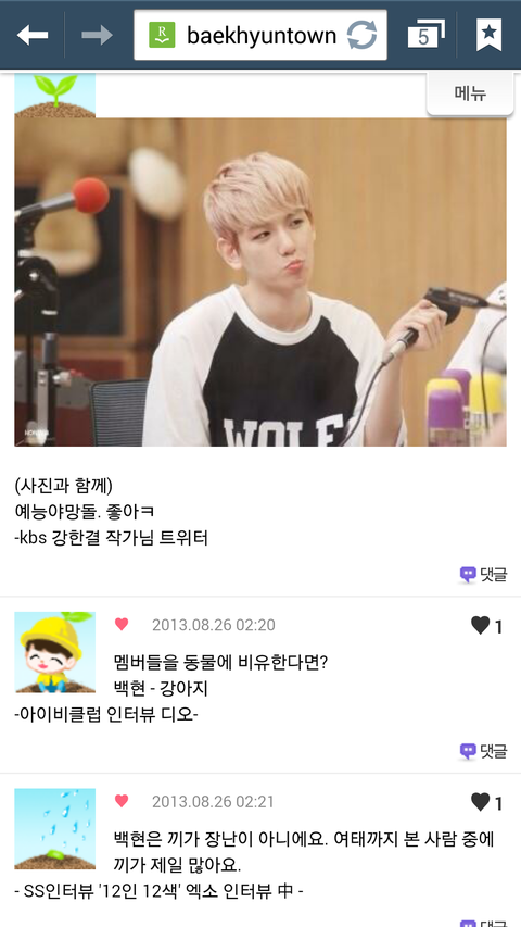백현이 처음엔 비글스러워서 좋아했는데 알면 알수록 진짜 진국이라 더더좋아져~