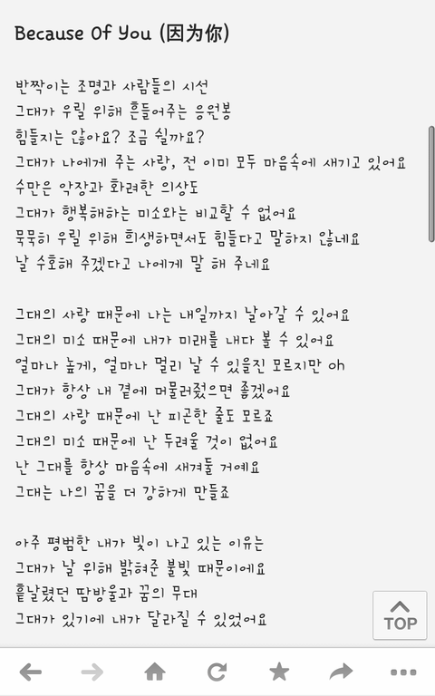 레이가 작사작곡한 'because of you'라는 곡이야~