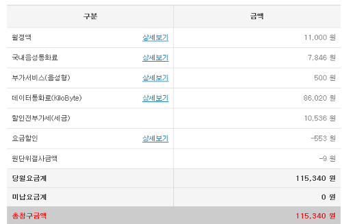 지금 와서 데이터를 얼마나 썼길래 86000원이 나왔나 봤다... 168kb 썼다... 미치겠다 정말...
