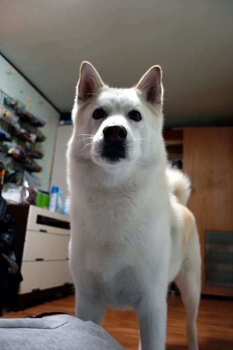 간식 두는 방에 와선.. 간식 꺼내달라고 저렇게 쳐다보고 있어요
