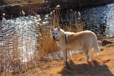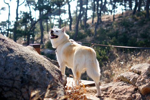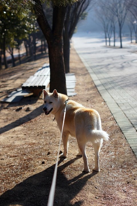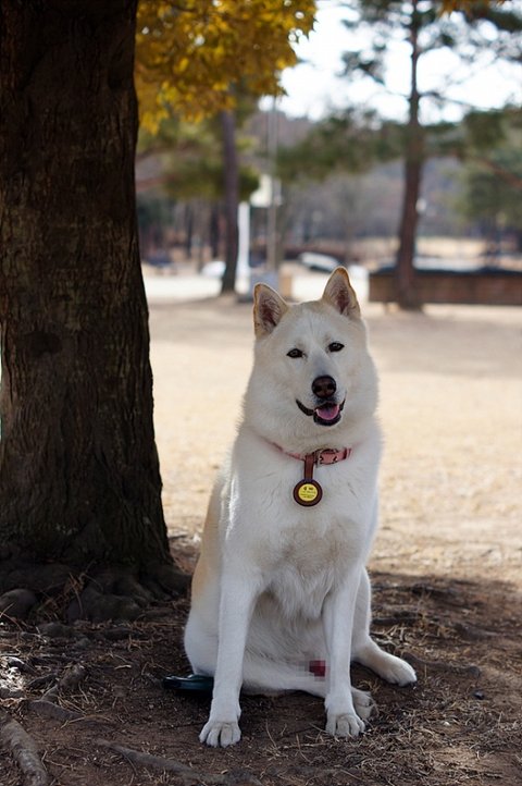공원 들어가자 마자 만난 진돗개