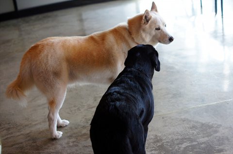 래브라도 리트리버 깜이.. 심바에게 호감이 있어요.ㅎ
