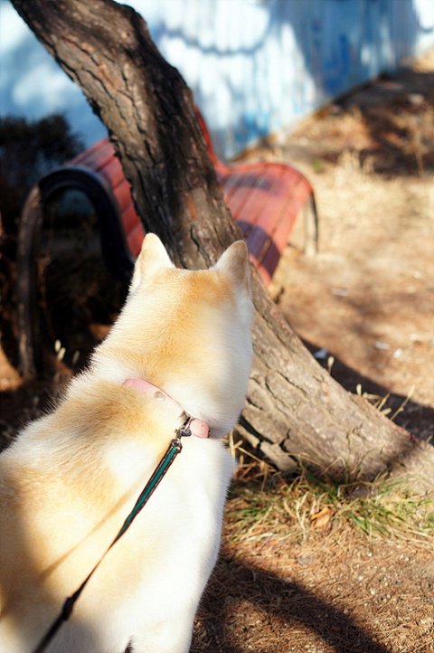 매일 같은 코스로 산책하다보면 지겨워 해서 가끔 다른 동네로 산책을 가요.