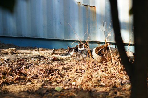 추운데 새끼 돌보는 어미도 새끼들도 불쌍해 보여서 가끔 고양이 사료를 주는데..