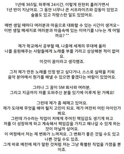 그리고 왠만하면 다웃어주시고 팬들에게 한없이 친절하고 다정함ㅠㅠㅠ 레이의 생일 다음날인 2013년 10월 07일 공홈에 올라온 글임!