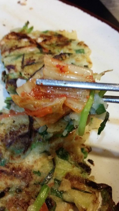 새콤했던 김치, 파전먹고 나서 그런지 배가 불러서 김치전은 겨우 다 먹었습니다 !