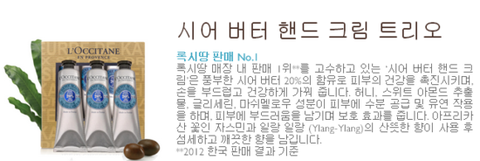 시어 버터 핸드 크림 트리오입니다. 록시땅에서 제일 많이 팔리고, 제일 유명한 제품이라고 하네요,