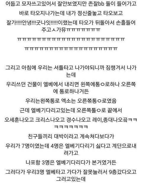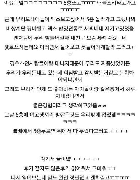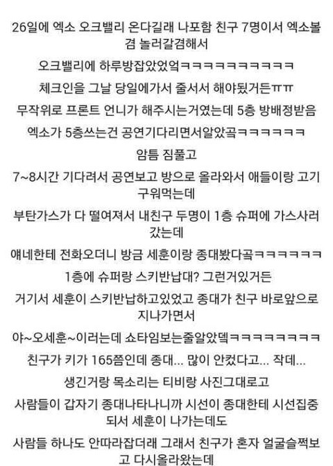 오크밸리에서 엑소랑 같은 층에서 잠.jpg