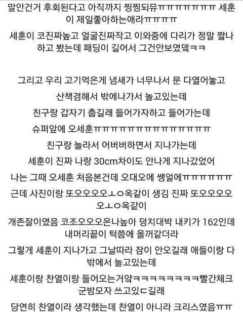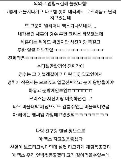 열심히정독하다가 크리스가 사진이랑똑같다는말에 바로내려버림ㅋㅋㅋㅋㅋ엑소에서실물갑이 크리스랑수혼데 크리스가 사진이랑똑같다니..ㅎ