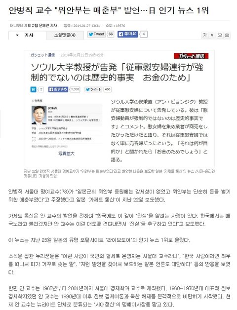 http://www.mt.co.kr/view/mtview.php?type=1&no=2014012718120590226&outlink=1(이에 대해 안병직 교수측은 그런말한 적이 없다며 반박하는 기사를 실었다)