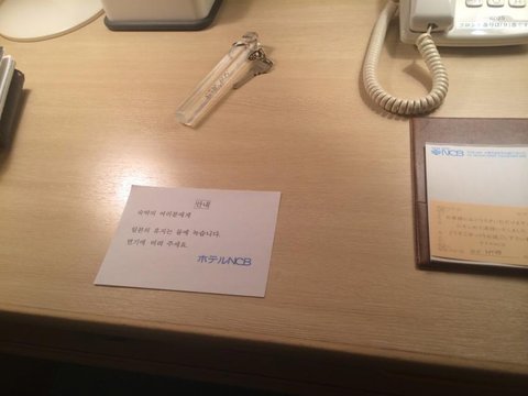 한국관광객들에게 알려주는 열도호텔의 안내문