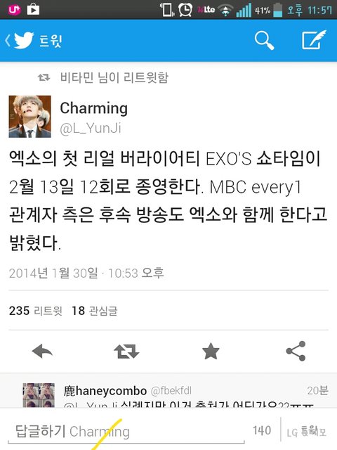 쇼타임 종영하고 후속하는데 그것도 엑소랑한뎅