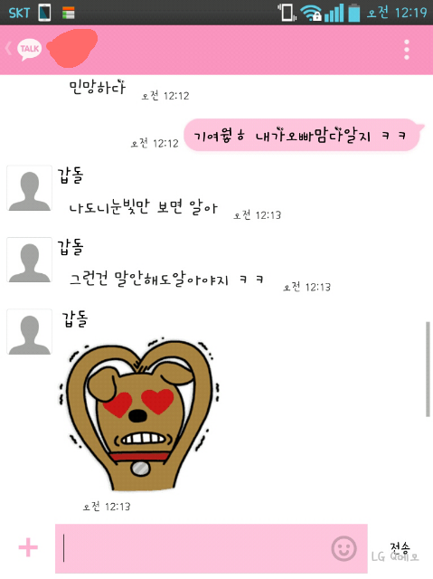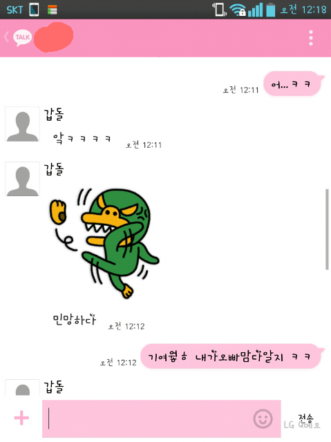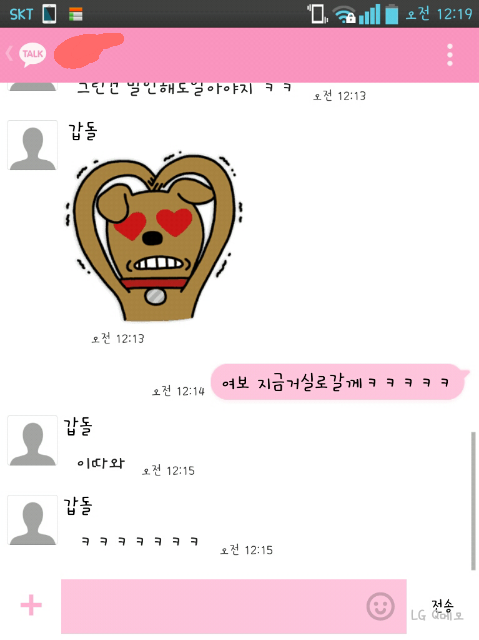 나는 침대에 누워잇다가 카톡오길래 확인했더니 ㅋㅋㅋ