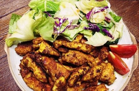닭가슴살에 카레가루 부침가루 묻혀 기름둘러