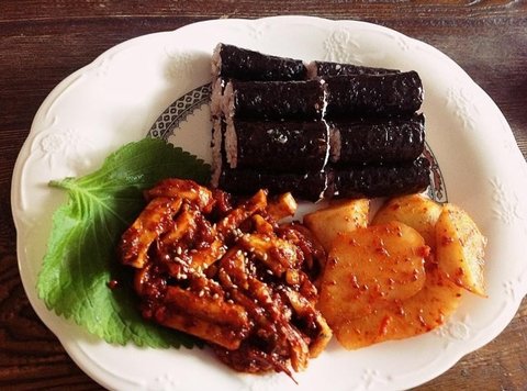 충무김밥임. 오징어는 소스가 좀 많았지만 먹을만 했고 무는 미리 안 절여놓고 하는 바람에 완전 떫었음ㅋㅋ