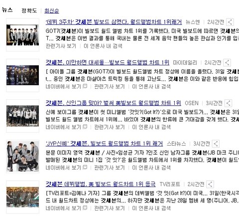 빌보드 내 월드차트 정상에는 갓세븐의 이름이 올랐다.