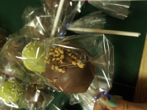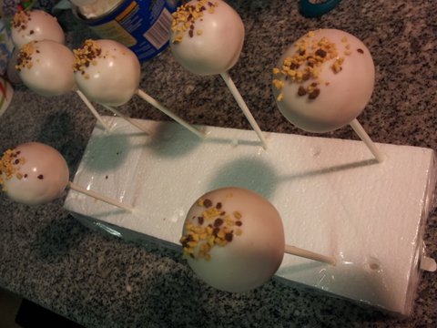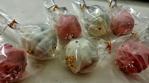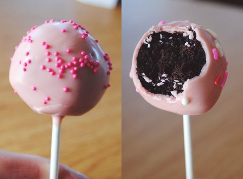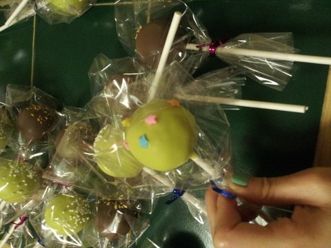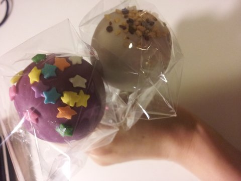 케이크팝은 겉은 초콜렛으로 코팅을 하고 안에는 부신 케이크시트를 아이싱이나 초콜렛으로 반죽을 한거에요.