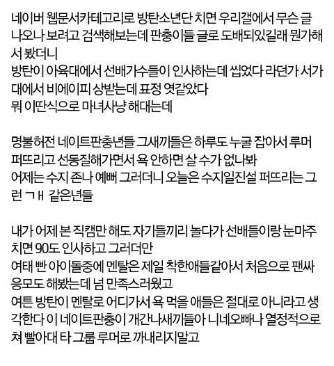 방탄서치하니깐 메인에 뙇하고 떠있는 글
