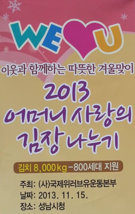 "국제위러브유운동본부 사랑의 김장나누기를 통해